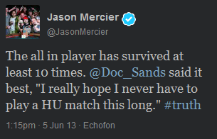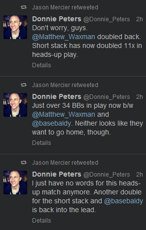 Данный турнир запомнился, в первую очередь, хедз-апом, который продолжался почти 7 часов и заставил всех зрителей просто умирать от ожидания праздновать чью-то победу. Большая часть профессионалов, которая болела за Болдуина, откровенно скучала и спамила в твиттер всевозможные колкости. Особенно этим отличались Джейсон Мерсье, Донни Питерс и Дэвид Сендс.
