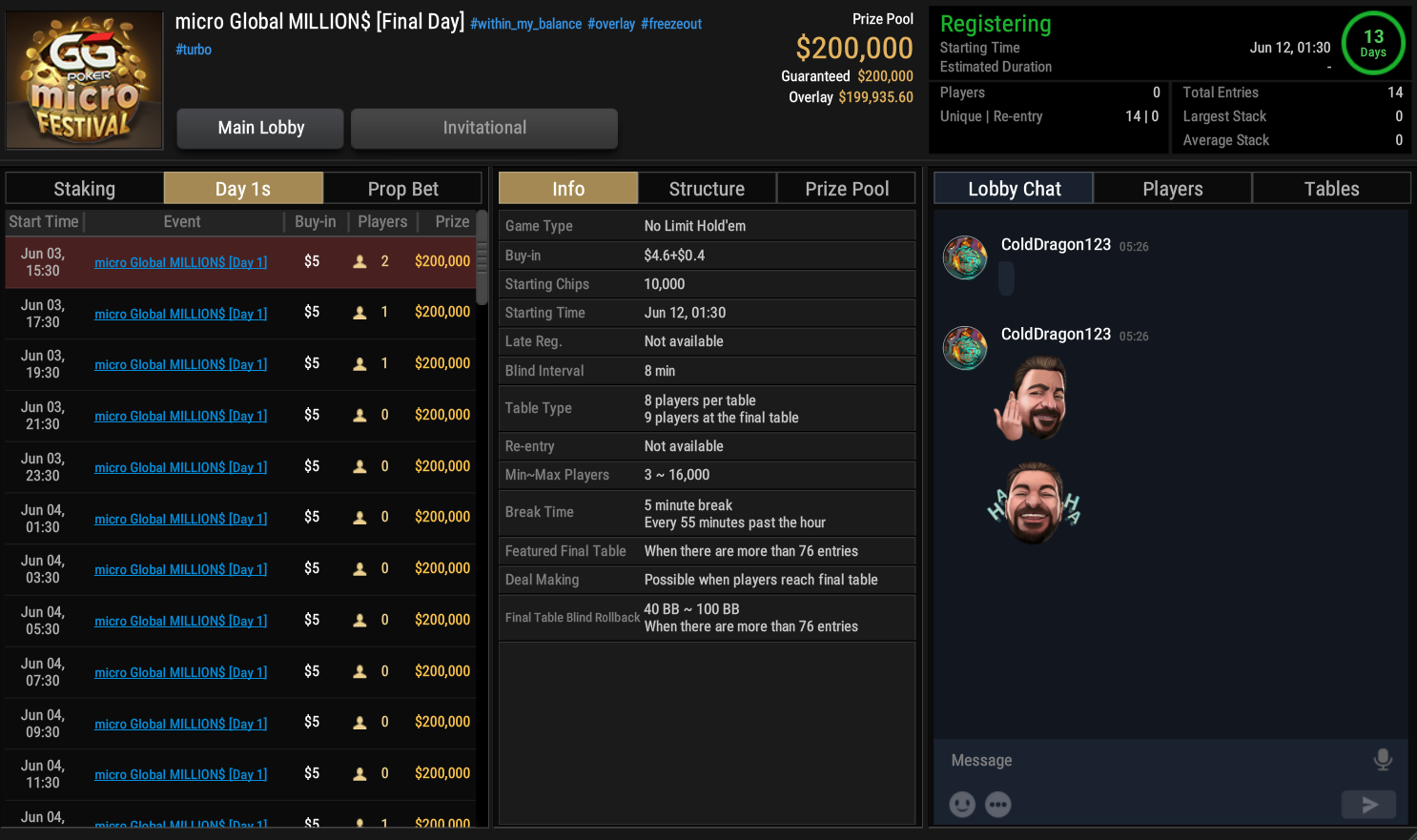 Большая часть турниров microFestival имеет гарантии ниже $150,000, но у чётырёх мультифлайтов они превышают $200K.
