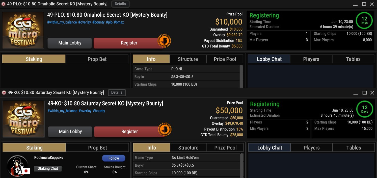 - $10.80 Omaholic Secret KO [Mystery Bounty] $10K Gtd.