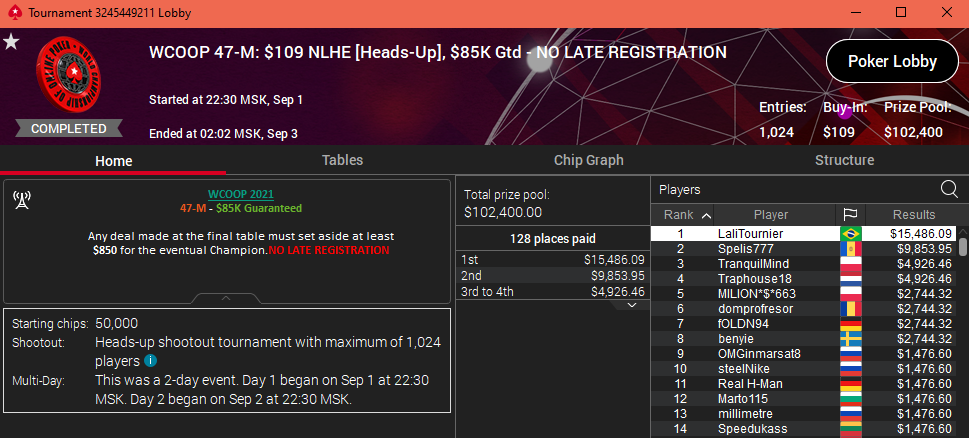 Лали — не случайный человек в покере. Она играет с 2011 года, и сейчас в её загрузке (по крайней мере, на стримах) можно увидеть турниры от $5,50 до $55. Сегодня девушка победила в событии WCOOP по $109, которое явно было для неё «шотом» на лимит повыше.