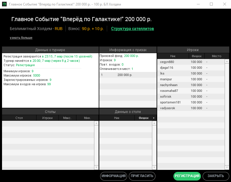 - Главное событие с бай-ином ₽100 и гарантией ₽200,000. Старт 7 марта в 18:00 МСК.