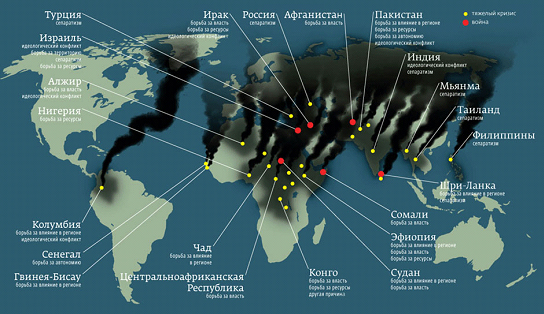 Такой неутешительный вывод сделали в Гейдельберском институте международных исследований конфликтов. Прежняя рекордная планка была зафиксирована в 1993 году и составила 16 войн.