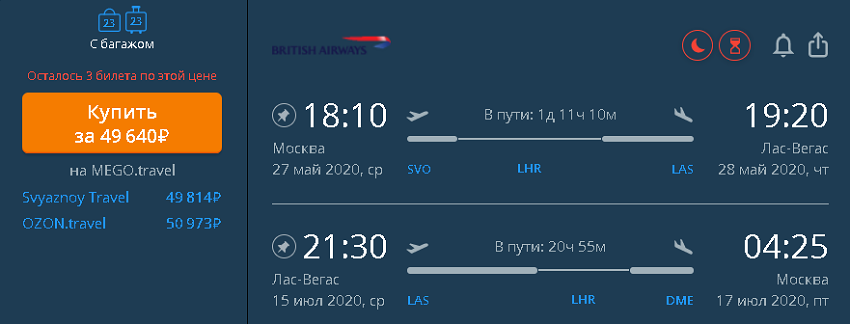 | Авиабилеты туда-обратно (при условии приобретения в ближайшее время) | $780 |