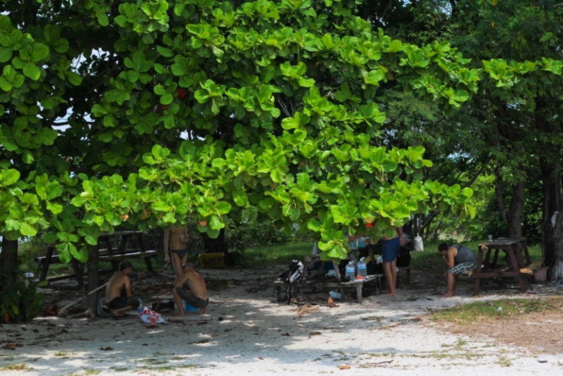 Всего через 20 минут мы были уже на месте, с разной степенью везения попрыгали с корабля и направились к зарослям кустов, где виднелись столики.