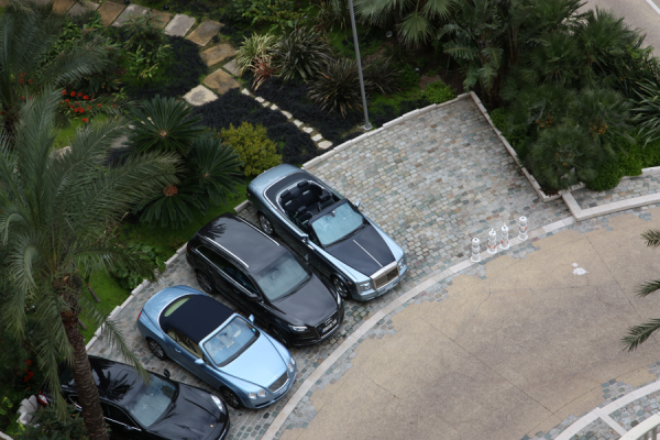 Погода слава богу гораздо лучше вчерашней. У входа в отель в рядок стояли пара порше, бентли, роллс ройс и феррари :)