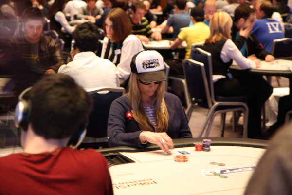 В лифте встретил Вадима Маркушевского, который показал, как пройти до места, где будут проходить турниры. Там в это время шел хэдзап по 5к евро и сателит на мейн за 500 + 500. На первом фото - Ванесса Руссо, на заднем плане слева - Максим Дикей Лыков. Также на турнире видел RasZi, Elky.
