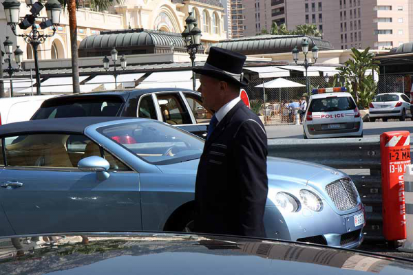 Доехали мы бесплатным шатлом от отеля до Казино — наверно, градообразующего предприятия Монако. На парковке забавные солидные парковщики в котелках умело разруливали по парковочным местам все те же Бентли, Феррари, Бугатти и другие чудеса мирового автопрома.