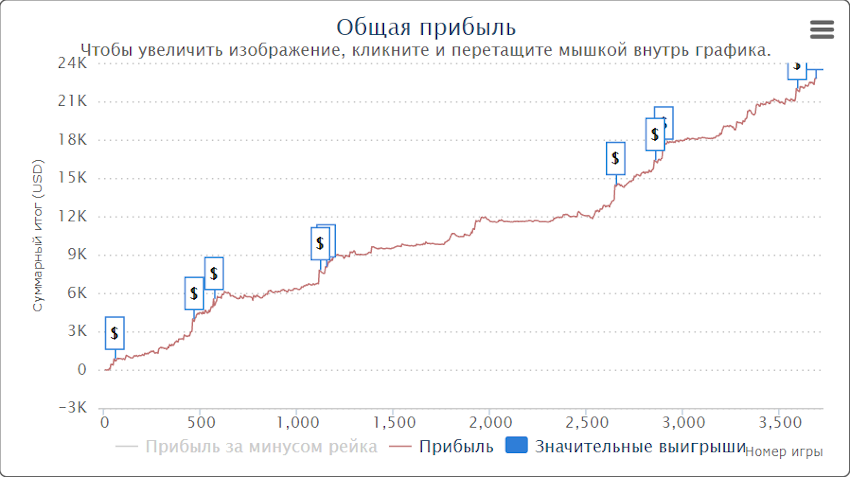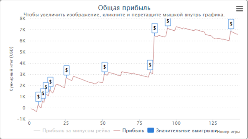 Увы, большинство турниров идут ночью, что для меня неудобно. Поэтому я редко там играл в будние дни. И то, только когда вылетал из турниров в основных румах. С 2018 года у меня в руме наиграно всего 137 турниров. Это воскресники по $27. Вот и мой график.
