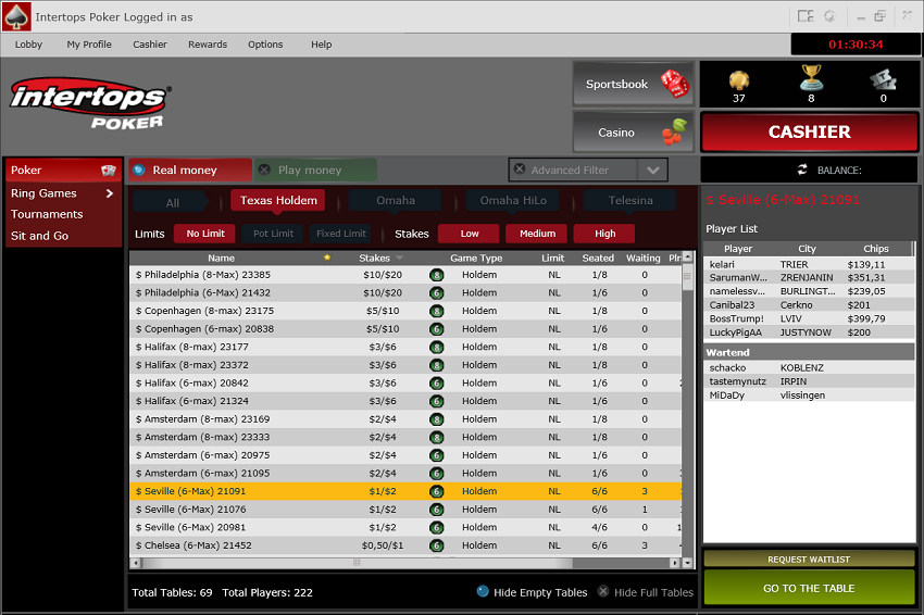 Активность в Intertops первое время меня не впечатляла — две сотни человек, отсутствие АБИ выше 27$ и активности в кеше от NL200. Но я там зарегистрировался и стал изучать лобби пристальным взглядом бамхантера.