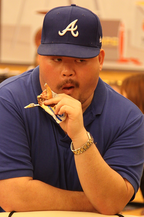 “Настроение отличное! - улыбается Саша Довженко. - Я прилетел только вчера, но уже полностью включился: хожу, смотрю, с ребятами общаюсь... Завтра начинается мэйн, вот тогда и сяду за столик. А пока - просто наслаждаюсь обстановкой”.