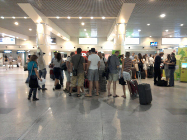 Поскольку с нашим самолетом были проблемы, он был заменен на другой, а вылет перенесен на другой выход, из-за чего у нас возникли некоторые проблемы дальше. На этом месте, казалось бы, мой тур на Кипр мог бы и закончиться, так как за 10 минут до вылета, обозначенного в билетах, я позвонил Севаре (которая организовала нашу группу), и выяснил что она уже прошла таможню. Мне пришлось поторопиться, но как оказалось, совершенно зря. Наши игроки ходили по duty free магазинам, сидели в баре, и в целом "проявляли прочие симптомы опоздания на самолет". Из-за смены самолета наш вылет задержался где-то на полтора часа, но мы ве же отправились в... Анталью.