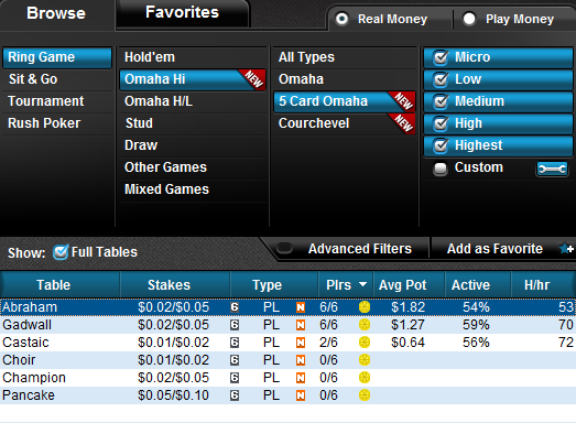 Очередные изменения на возрождающемся Full Tilt Poker и это снова новая игра… даже целых две. Вслед за PokerStars администрация FTP запускает кэш-игру и турниры в дисциплинах “5-карточная омаха” и “Куршавель”, разновидность все той же омахи с 5 картами у игрока, но забавной особенностью – первая карта на столе открыта уже префлоп. Обе игры доступны только в Hi-формате, но в случае популярности дисциплин, Full Tilt Poker будет и дальше увеличивать разнообразие видов для любителей омахи. В данный момент дешевая и средняя по бай-ину игра и в 5 Card Omaha и в Courchevel достаточно спокойно собирают от 3-х столов. Взрыв популярности запланирован на понедельник, когда за игру на столах новых дисциплин будут начисляться в два раза больше Full Tilt Points.