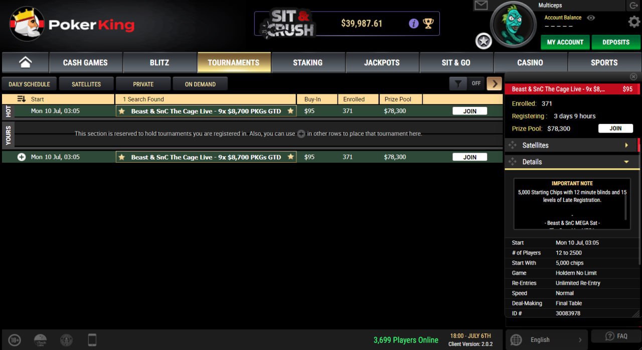 Первый сателлит $95 Beast & SnC The Cage Live начнётся 10 июля в 01:05 МСК. В нём гарантированы 9 пакетов по $8,700 каждый — они включают: