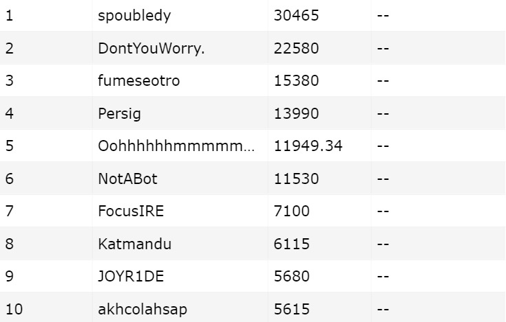 С большим отрывом пока лидирует один из волшебников SPINS наших дней Павел «spoubledy» Першко.