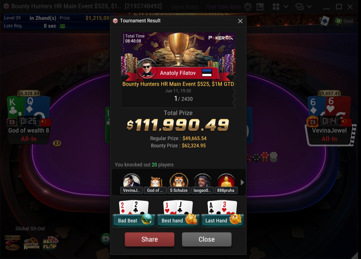 Анатолий «NL_Profit» Филатов выиграл $525 Bounty Hunters HR Main Event $1M GTD