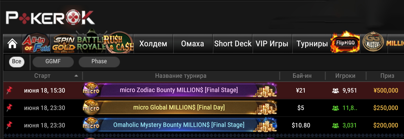 Другие новости ПокерОК: три турнира с общей гарантией $500K+ проходят на этой неделе