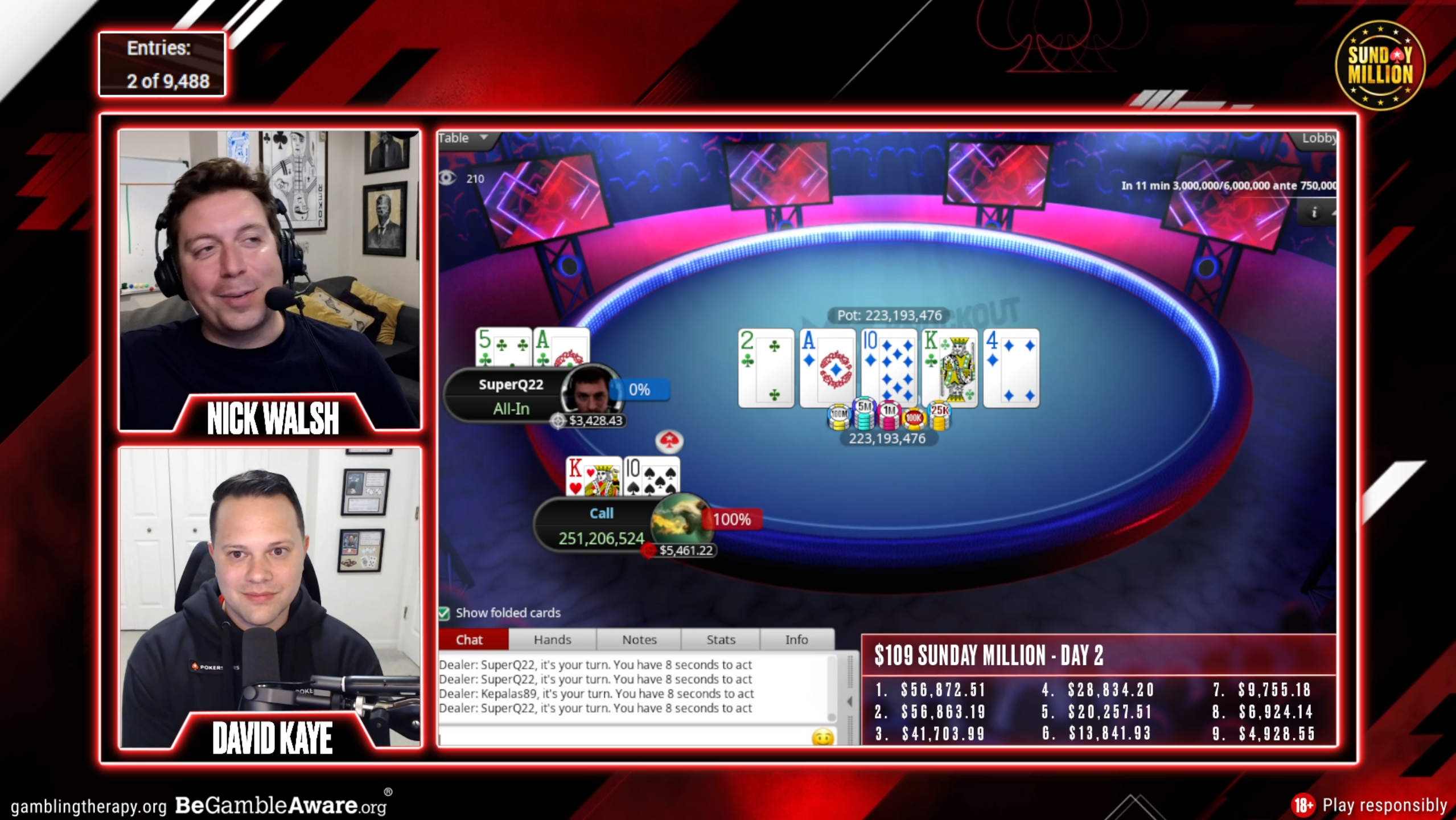 Второе место в Sunday Million принесло ему бесткеш карьеры — $63,7K. Победителем же стал литовец Мантас «Kepalas89» Лячаускас — он получил $85,5K.