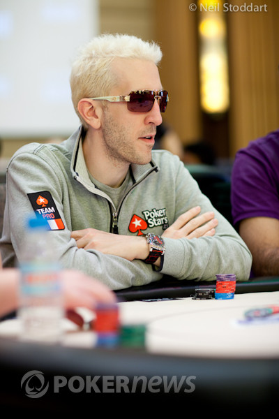 А вот Измаилу Эркенову удалось заработать скальп старзовского тим-про. Измаил открылся рейзом в 1,6к с батона, Пантазидис Анестис (Pantazidis Anestis) зашел на «посмотретьфлоп-велью» с малого блайнда, а с большого блайнда блондин Бертран "ElkY" Гроспелье обьявил олл-ин своего короткого стека. Эркенов заколлировал ва-банк Гроспелье, а Анестис был вынужден выбросит, ибо «не по шансам». Бертран оказался впереди – А