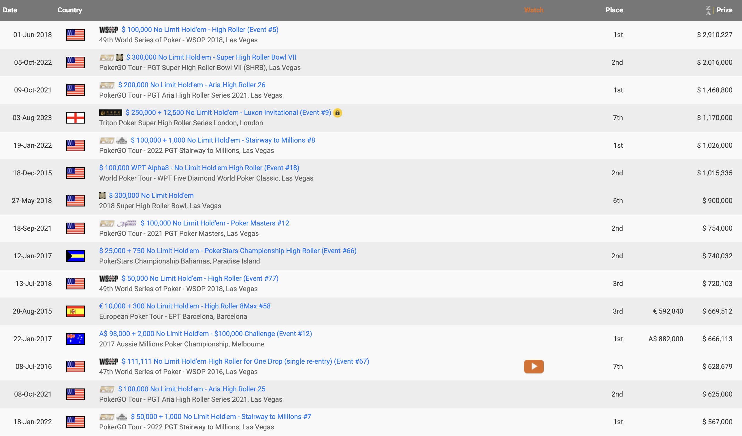 Nik Petrangelo Hendonmob: лучшие результаты