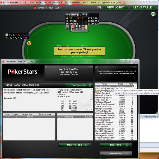 Сессии получались порой очень долгие. Например, 18 ноября сыграл порядка 45 турниров. В среднем, за сессию играю порядка 20-30 турниров. Если чувствую, что в плохом состояниии/настроении или тильтую, то не открываю новые столы и доигрываю остатки. Очень важно играть в хорошем, стабильном настроении - тогда решения будут максимально эффективны. Много дeнeг проигрывается именно по причине плохой формы и отсутсвия холодной рациональности, особенно после переездов и прочей фигни с ГСЧ. Если я в оптимальной форме и настрой в поряде, то бэдбиты не воспринимаются с эмоциональной окраской и не сильно влияют на игру, что +ЕВ. А вот если после переездов я ловлю тильт - что порой случается- это сразу маячок больше ничего не открывать и заканчивать сессию. Эти моменты сейчас отлавливаю и сразу прекращаю сессию. Цена ошибки в поздней стадии очень дорога. А эти ошибки есть у всех. Порой просто даришь дeньги. Ответ прост - отменил все реги, доиграл остатки.