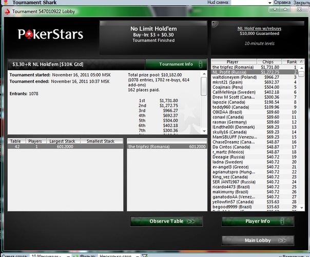 Играть в ноябре на полную катушку удавалось не всегда - по причине множества событий в личной жизни и не только. Но тем не менее, удалось сделать несколько финальных столов в турнирах с совершенно разными байинами.