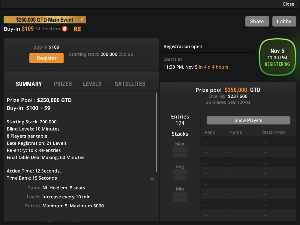 Обычно у воскресника $109 Main Event гарантия составляет $150,000, но 5 ноября в 21:30 МСК он стартует с гарантией $250,000.