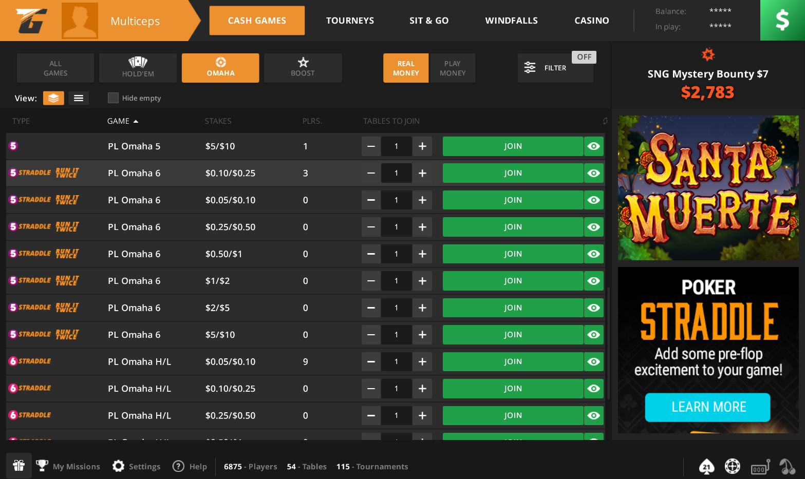 Чтобы найти новые столы, зайдите в «Cash Games» и отсортируйте вкладки по столбцу «Games».