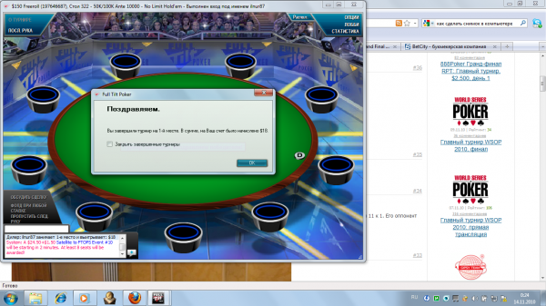 В общем я занял 1 место в фриролле 150 $ на ФТ. Я так счастлив,сейчас расплачусь, я был неподражаем играл как Негреану , а иногда как Айви...Рвал оппонентов на кусочков,а последняя раздача-ух ,заслоупеил сет семерок...))