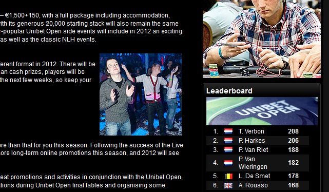 В общем в этом году исполняется 5 лет серии Юнибет Оупен и по этому случаю вся серия будет особенно роскошной :) Во всяком случае так презентуют серию на сайте. Далее инфа по пакету и всякая общая информация… а далее вот это уже интересно. Первый турнир по ставкам Лайв в Праге. Ха! Значит Том, с которым мы познакомились в Риге точно будет ))) Том разрабатывает софтину по ставкам для Юнибет, ну и ко всему прочему он офигенский мужик) Смотрим дальше… Турнир по блэкджеку. Лудолэнд :) Такой турнир в Риге выиграл белорус.