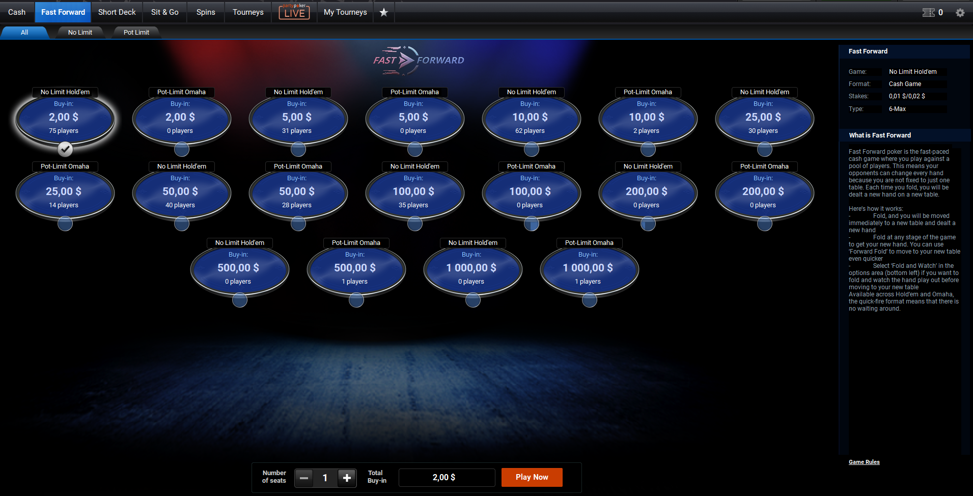 На данный момент функция Run It Twice на partypoker работает только за столами Fast Forward (быстрый покер) как для пользователей ПК, так и Mac. В ближайшем будущем (надеюсь, до 2033 года) доблестные программисты Пати обещают сделать RIT доступным для игроков обычных кэш-столов, а также для пользователей мобильных устройств.