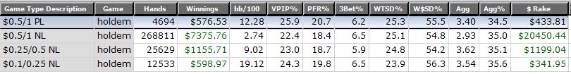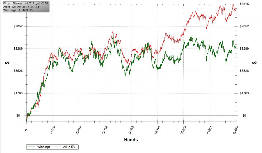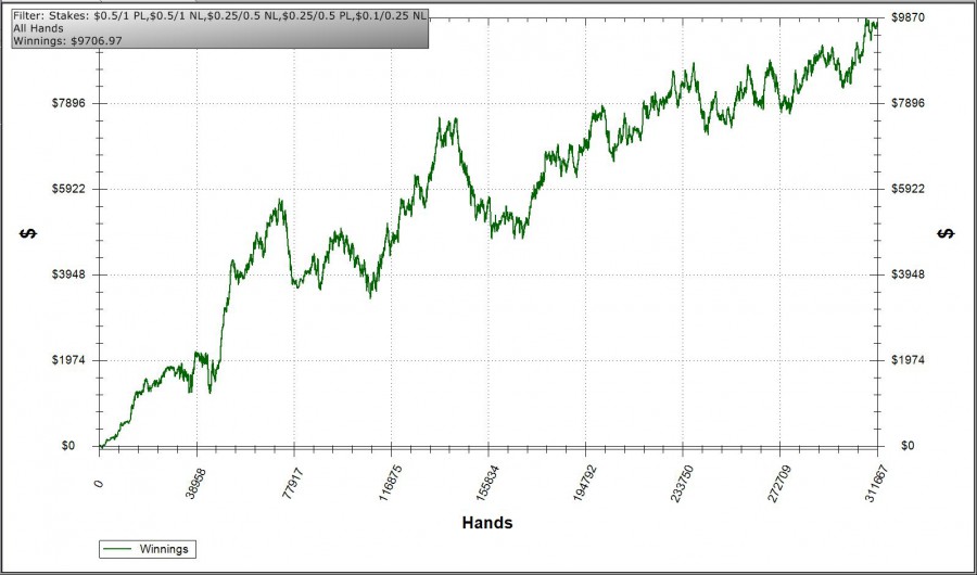 Мои графики со статистикой из программы Holdem Manager на конец 2010 года: