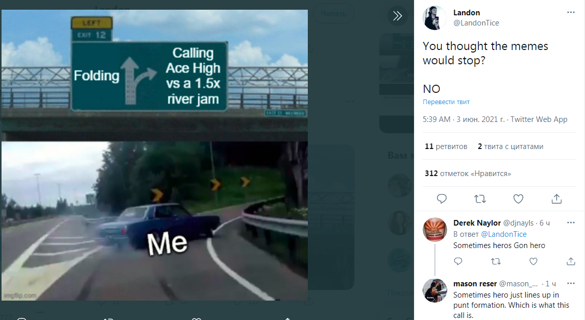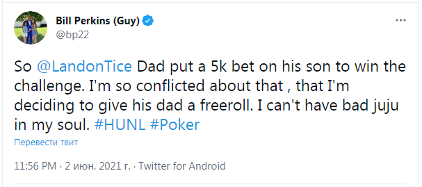 Папа Лэндона Тайса поставил $5K на победу сына в челлендже. Я испытываю настолько противоречивые чувства по этому поводу, что решил дать его папе фриролл. Не смогу жить с плохой ауркой #HUNL #Poker