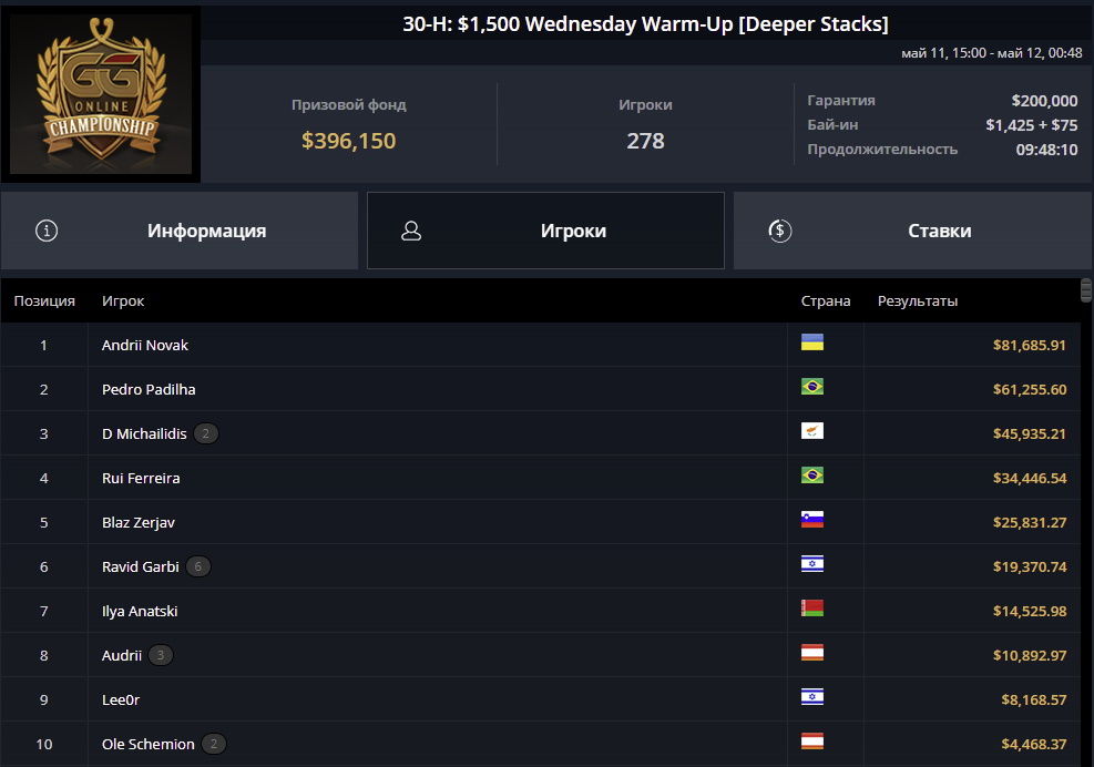 Жоао Симао удерживает первое место в Medium лидерборде. Как пишут бразильские издания, он гриндит турниры GGOC с любыми бай-инами и в первые дни занёс два турнира: