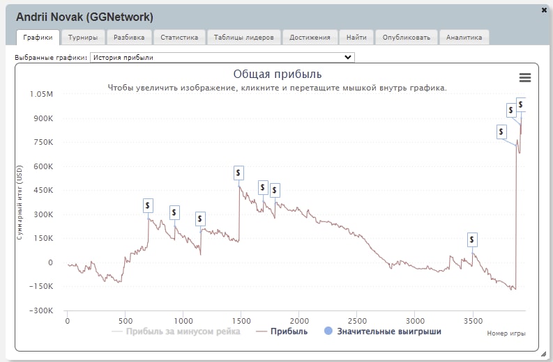 В течение мая Андрей выиграл более $1,000,000 и отмазал затяжной даунстрик в сети GGPoker.