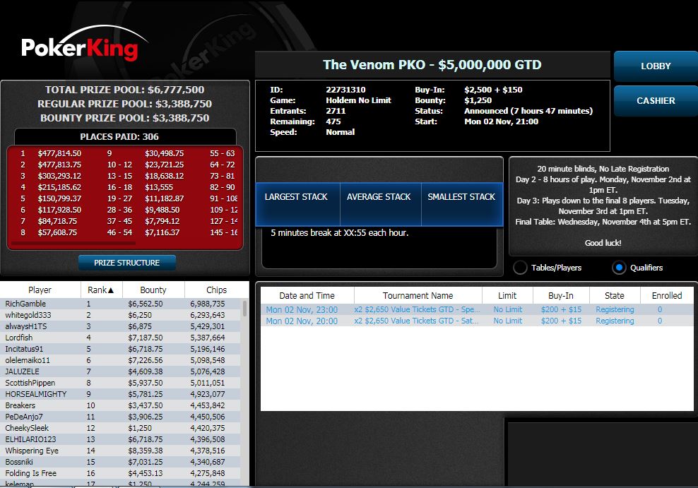 PokerKing: $2.650 The Venom PKO $5M GTD собрал 2.711 входов
