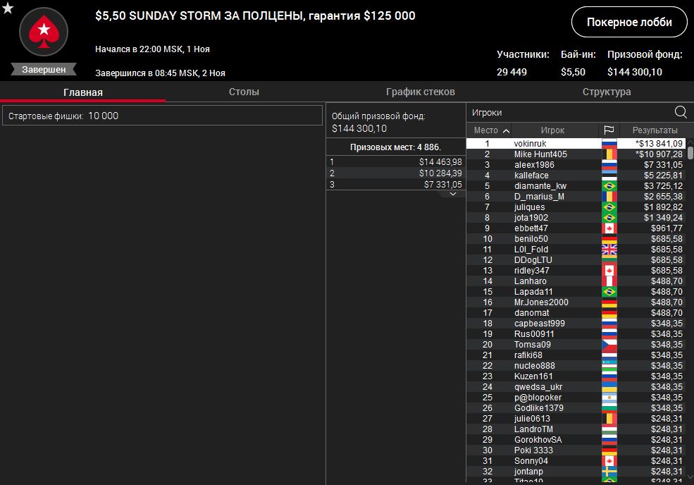PokerStars: игрок из России Михаил «vokinruk» выиграл Half Price Sunday Storm