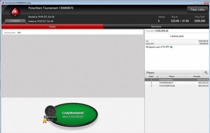 Примерно в таких же условиях год назад выиграл свой главный джекпот в жизни Эдуард «CodyWestwind» Кудрявцев.