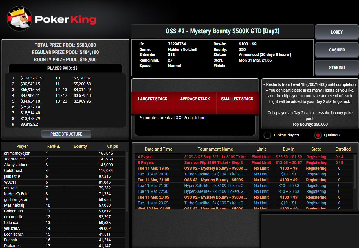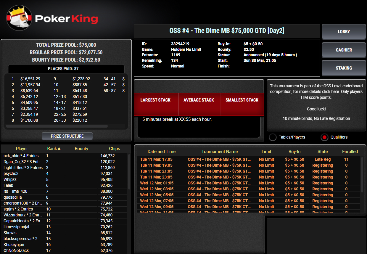 Они все стартуют пачками по 4-6 турниров в 00:05 МСК 17, 20, 24, 27 и 31 марта. Самые большие гарантии будут у пяти их них: