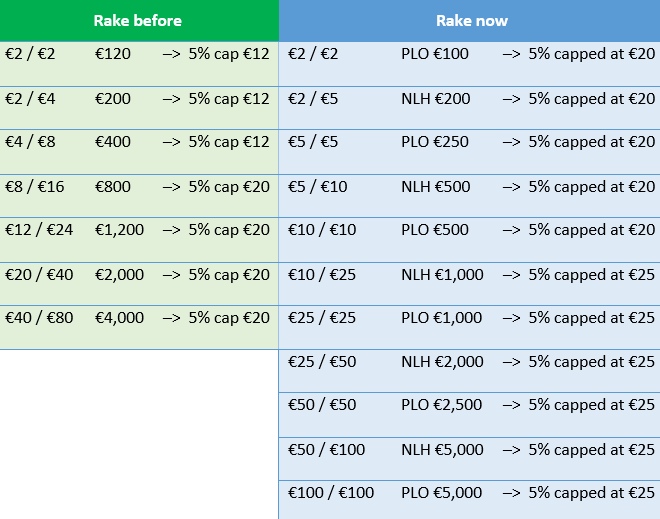 Кроме рейка, из банка после флопа вычитаются дополнительные €2 для покрытия расходов на персонал.