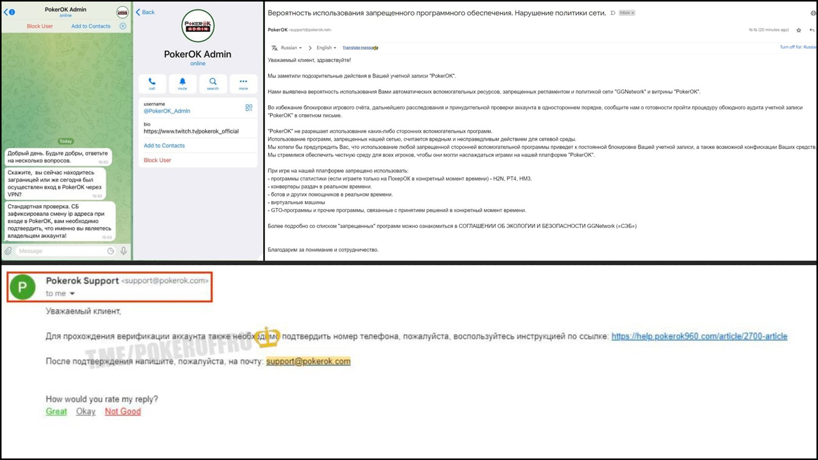 Из-за этого для русскоязычных игроков в последние 5 лет основная часть фишинговых писем и сообщений представлена подделками под рассылки или сообщения службы поддержки ПокерОК.