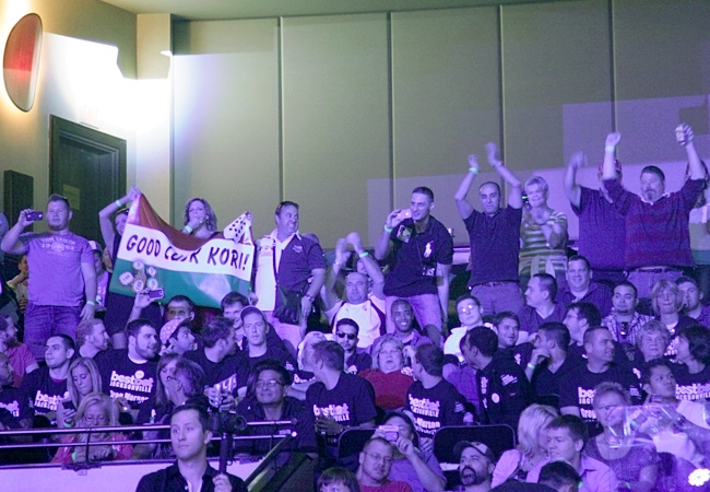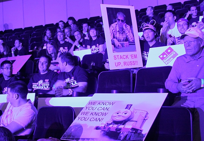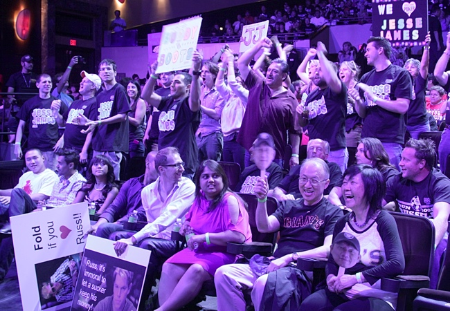 Телевизионщикам из ESPN была нужна динамичная картинка, и они ее получили. Эту публику не надо было заводить, при виде камеры она теряла волю! Относительно спокойно вели себя только счастливчики, которые получили места на самой сцене, рядом со столом - у каждого игрока была своя маленькая трибунка мест на 20.