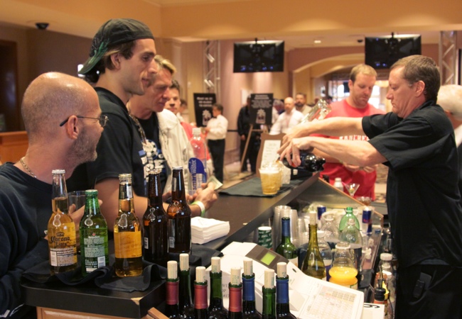 Зрители, кстати, “заряжались” как следует. Сухого закона на WSOP нет, только на этот раз в отличие от финалок в сайд-ивентах, никого под белые рученьки из зала не выводили, да и скандалов не было. Только где-то в двенадцатом часу, рядом со сценой весомо так грохнулось чье-то не очень трезвое тело: не рассчитал сил.