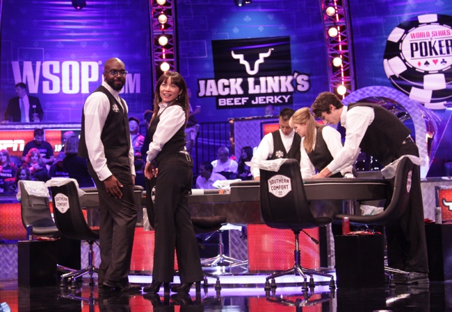 Где-то в 13:30 стали подтягиваться боссы из Caesars. Чуть позже, в 13:45 показались дилеры финального стола. Впрочем, ни те ни другие в зал пока не торопились...