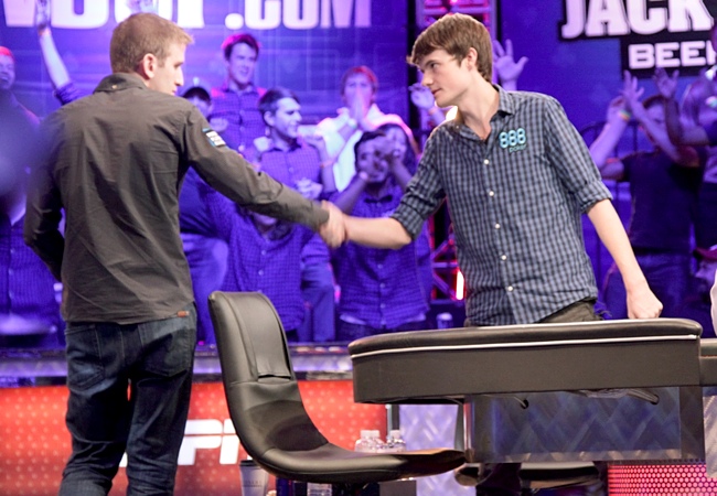 А спустя полчаса черту под первым днем финалки WSOP подвел Балсигер. Джейк был достоин попасть в топ-3, хотя бы только из-за того океана эмоций, который он расплескал по ходу его волнующих розыгрышей. С другой стороны, а что Томас мог поделать в той раздаче со своим стеком? Дал рэйз, получил олл-ин, не выкидывать же туза - он его не видел несколько часов! Балсигер показал A-K, кто ж знал.