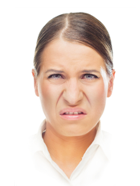 Сейчас обратите внимание на губы. К ним ещё вернёмся. Так может выглядеть лицо, если человек увидел или почуял нечто совсем неаппетитное. Это один случай. Присутствует нюанс. Мимика отображает не только эмоции. Мы ею пользуемся и для выражения каких-либо мыслей, отношений к ситуациям. Другими словами, это полноценный аппарат общения. Вскидыванием бровей как бы подчёркиваем важные фразы или подстёгиваем собеседника, строим гримасы, давая ответы без слов. Показываем не эмоции. Мы словно жестикулируем, используя «эмблемы эмоций». Вот ещё снимок, чтобы вы вновь обратили внимание на работу губ: