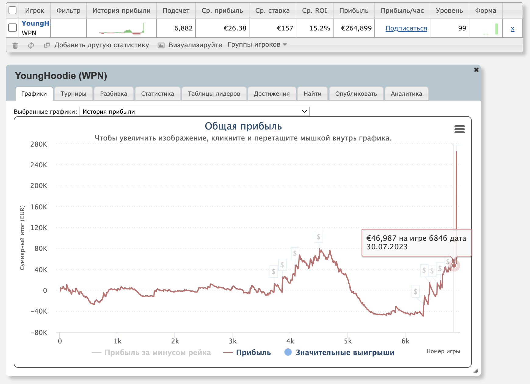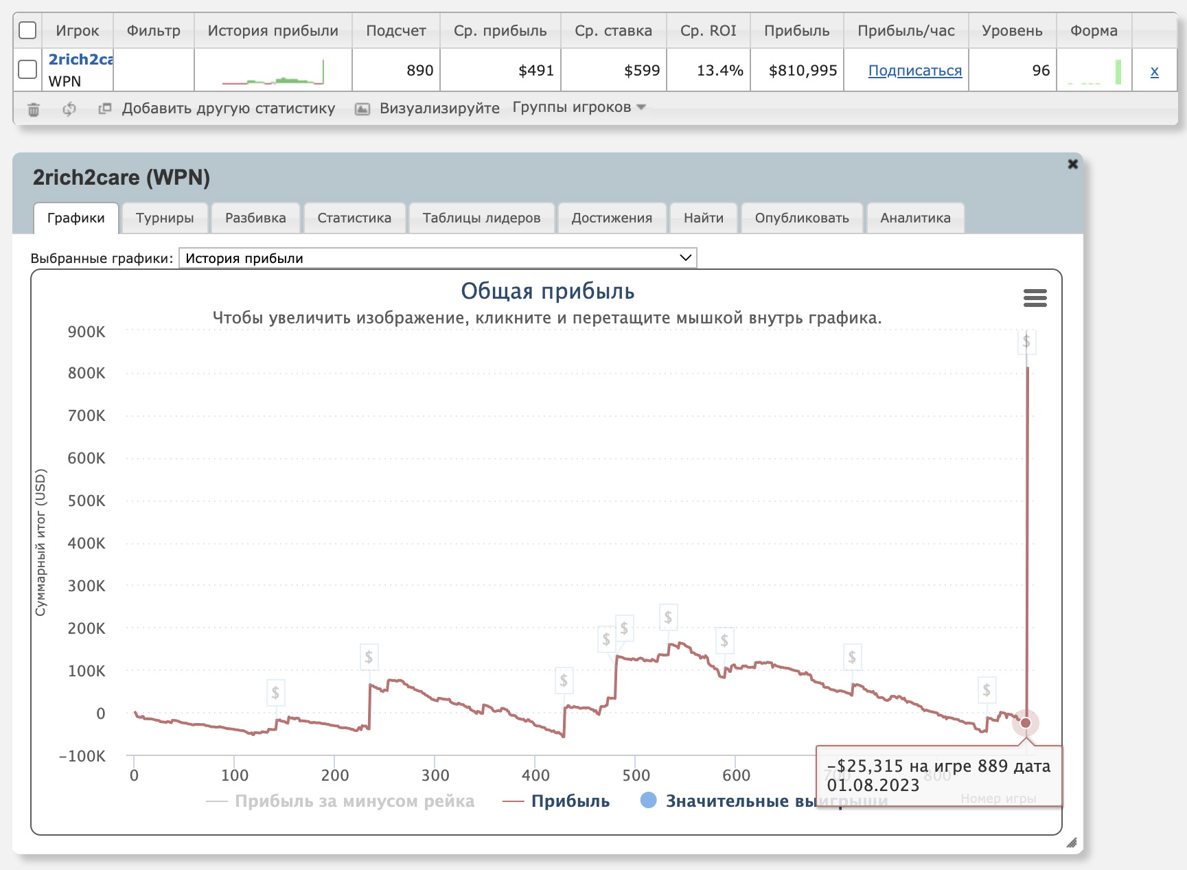 В офлайне у него $812K призовых. В 2022 году он выиграл $5K WPT Deep Stack ($246,1K).