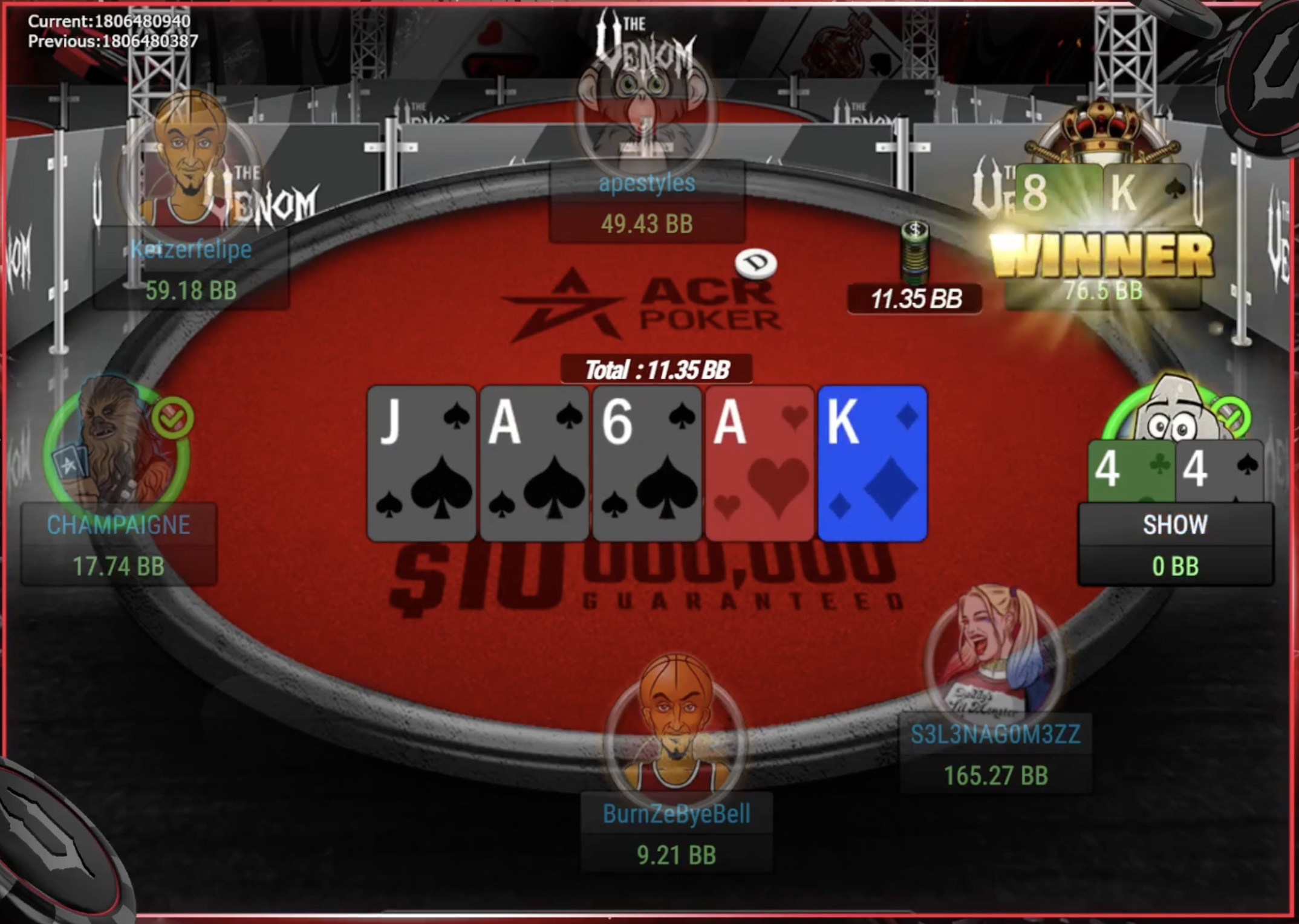 Фелипе Кетцер — покер-про с $1,1M призовых в офлайне. Это его вторая финалка The Venom в карьере. Два года назад в аналогичном турнире он занял 8 место ($130K).