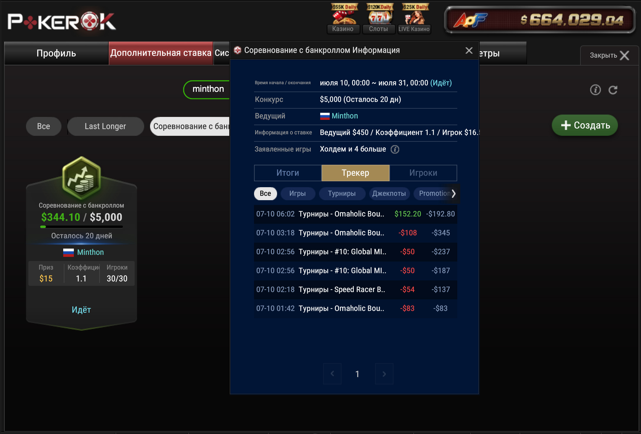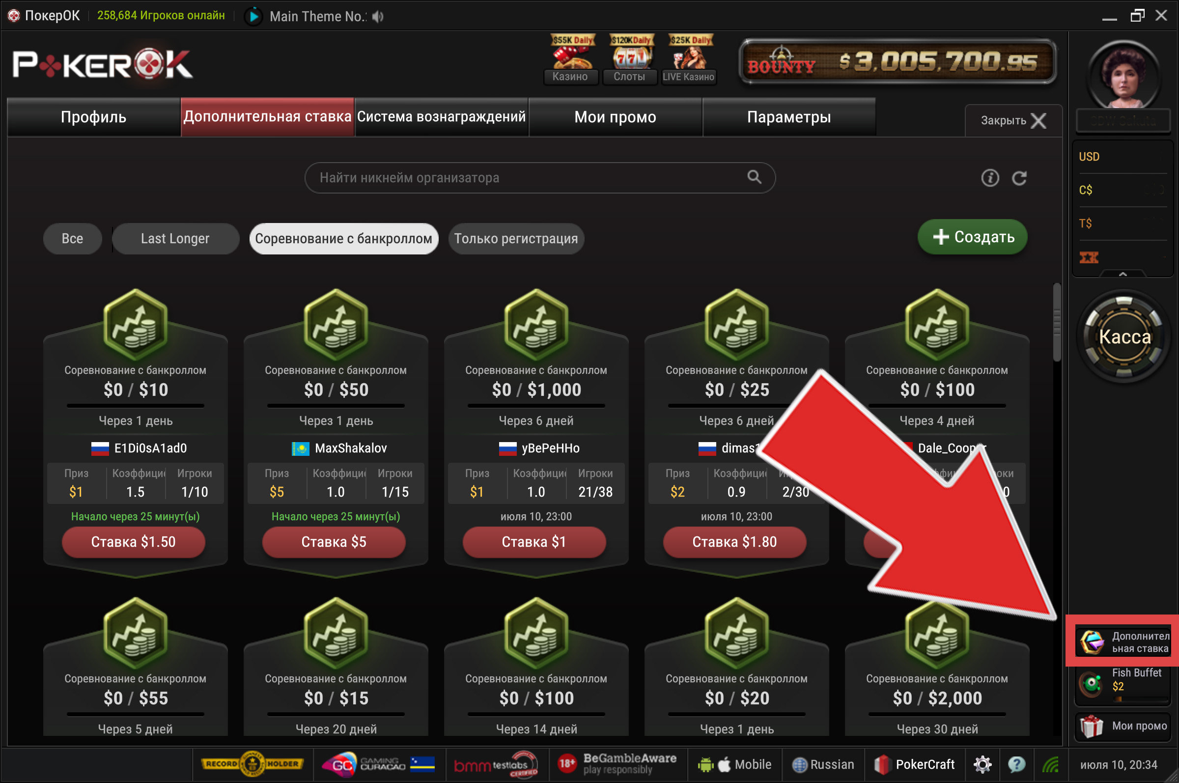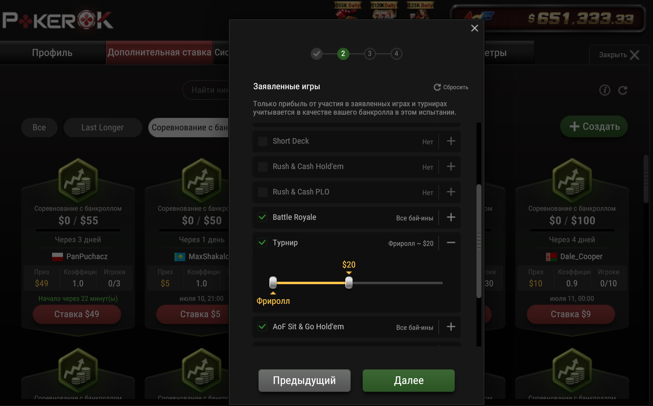Last Longer и Bankroll Challenge (Соревнования с банкроллом) — пари, которые можно заключить внутри игрового клиента ПокерОК без комиссии.