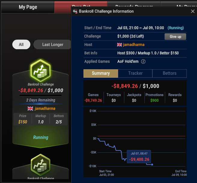 Функция Bankroll Challenge была добавлена 1 июля. Среди завершившихся пари есть интересное.