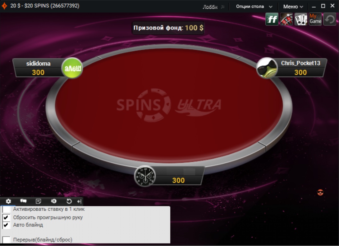 По аналогии с разработками конкурентов, SPINS Ultra стали ускоренной версией обычных спинов со стартовым стэком в 300 фишек (вместо 500) и уровнями блайндов по 1 минуте.